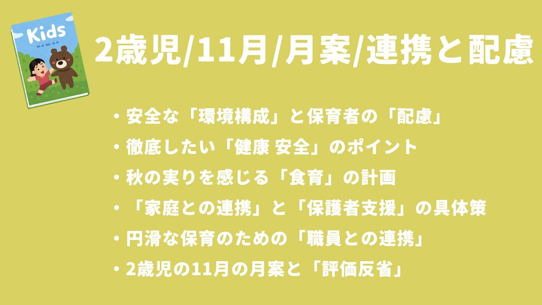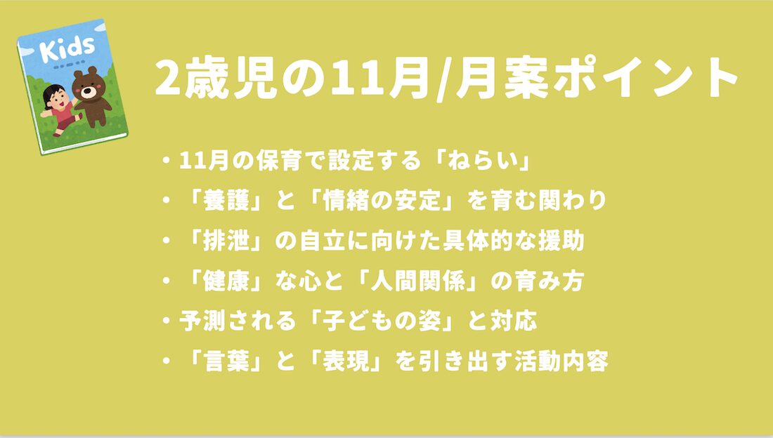 11月の2歳児クラスの月案作成に悩んでいませんか?