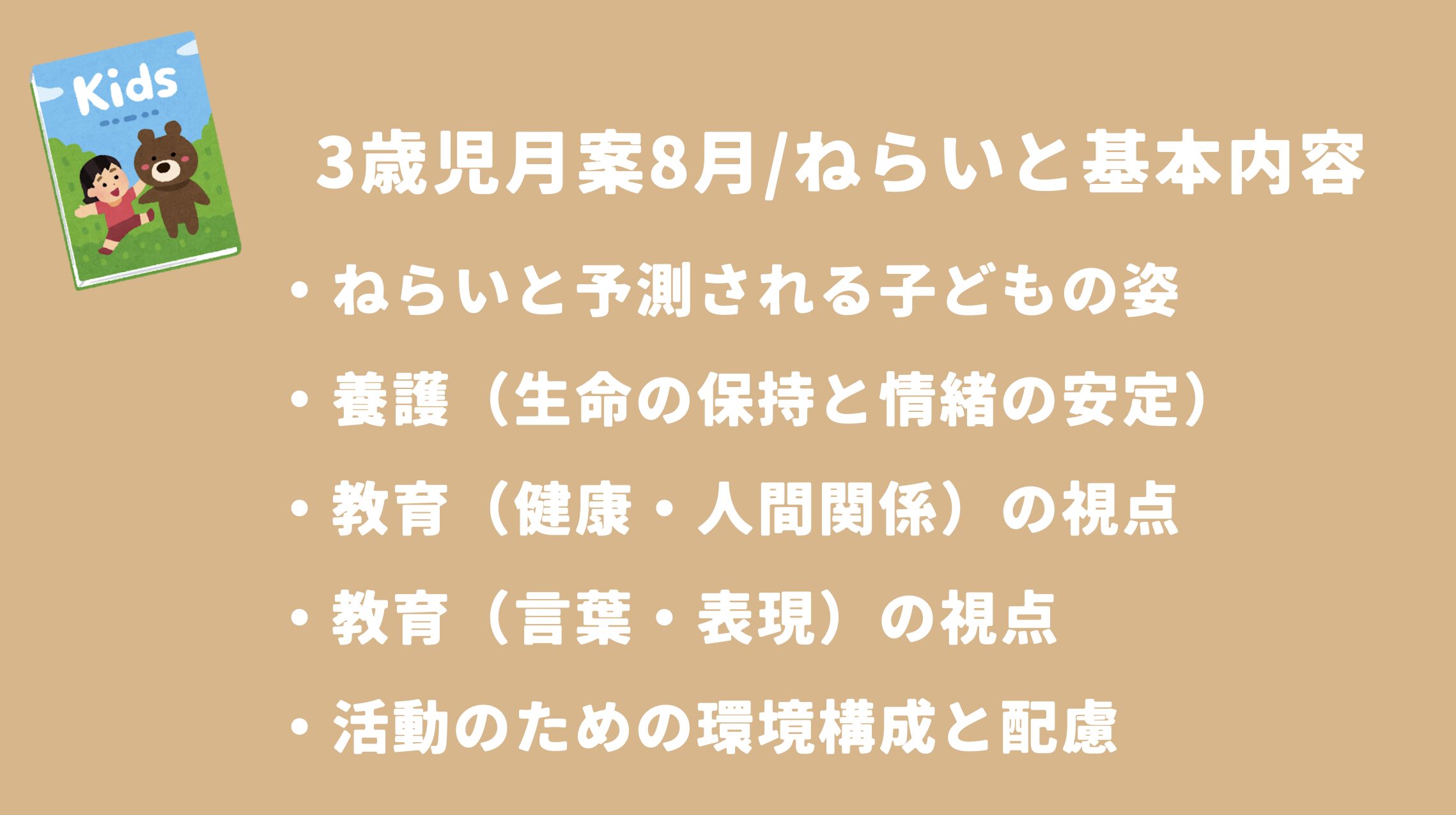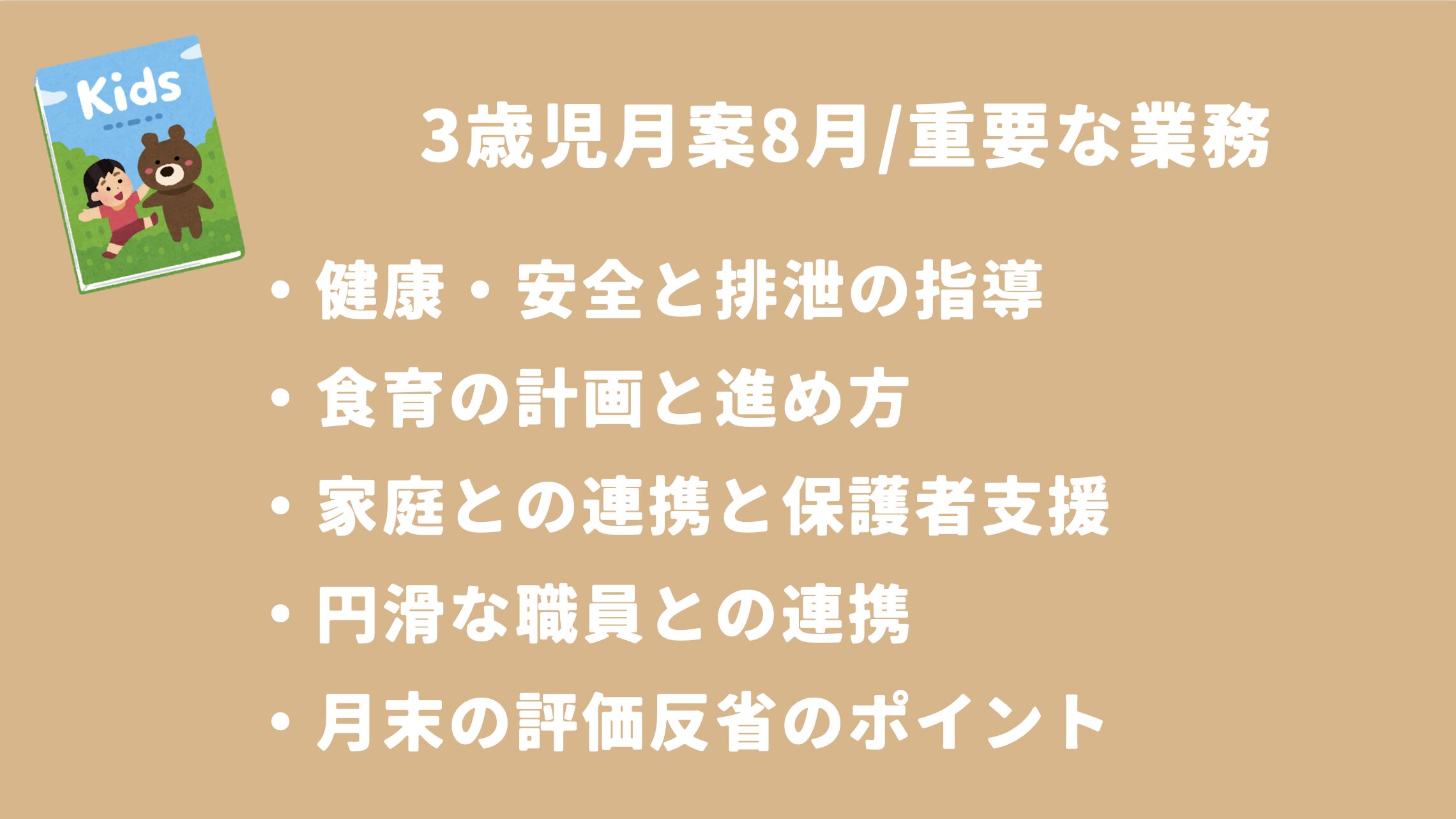 3歳児8月の月案で押さえるべき重要ポイントをまとめます。